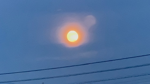 写真は昨日の夕方に散歩に出掛けた際に見えた満月らしいお月さま。