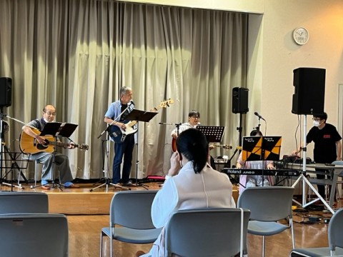 今日は日曜日で、8時から町内一斉清掃の日で隣組さんと道路等のごみやら草を抜いたりした。それから出掛けてお昼をジョイフルでランチをした。家に帰ってすぐにコンサート会場の大町コミセンに行った。今回はトップバッターとして出場~ 新たにキーボード担当が加わり、グループとしての体裁が整った。曲目は最初に我々のテーマ曲はしだのりひことシューベルツの「風」。それからシモンズの「恋人もいないのに」。続いてピーターポール&マリーの「悲惨な戦争」。最後にアリスの「狂った果実」の4曲だったが、帰り際に「基本3曲なので1曲多かったので予定時間を押しました」と…反省です。実は15分以内と勝手に解釈していました。次回からはきっちり3曲で参加するようにします。
