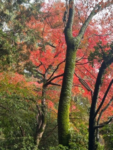 10時頃「浅野ふれあいまつり」に出掛けた。浅野小学校の体育館で毎年開催されているが、コロナ感染拡大防止で3年ぶりの開催だ。体育館のステージではステージ発表が行われていた。フロアにはひょうげ祭りの写真やらコミセンで活動する書道、児童の作品等で賑わっていた。それから金毘羅山の紅葉を見る予定だったのでお昼を近くのジョイフルで食べて駐車料金一日700円という駐車場へ止めて裏参道を傘を持って登った。やや紅葉には早いようであと1週間ほどで見頃のようだ。そのまま表参道に出て椿資生堂の喫茶に寄ってお茶をした。