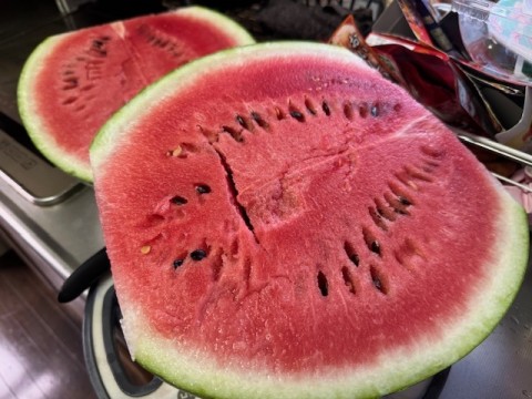 今日は日曜日で、朝から暑い! 8時にいつものアンデルセンへ行ってモーニングを。それからガソリンを入れて一旦家に帰って、庭の花々に水やりをして、9時半から始まる毎日書道学会の書道講習会に参加した。うちの社中から7人もの人が参加してくれていて有難かった。今日の講師は丸亀の島田香岫先生で、お父さんの島田青雲先生には青龍時代に大変お世話になり今でも感謝している。今回の講習会は「漢字」で先生は東京の星弘道先生の流れを汲んでいて若いのに確かな技術を持っていて県展の審査員という立場だ。丁寧なご説明でうちの社中の者も参加して良かったと感じてくれたことだと思う。お昼はセルフのうどん屋に寄って、連絡のあった奥方の姉の家に行った。スイカが出来たので取りに寄るよう言われた。前回と同様、驚くような大きさのスイカを2つもいただいたのでご近所に配った。夜はバレーがお休みとなったので、アヴィーちゃんと散歩の予定だ。