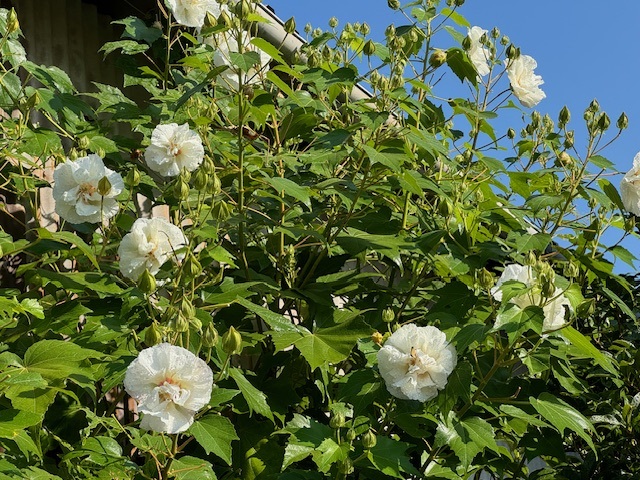 今年は10月に入っても写真の「酔芙蓉」が咲いている。