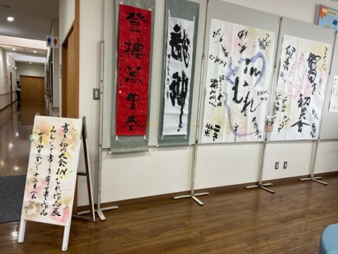 お昼は家に帰ってインスタントの焼きそばをおかずにご飯を食べて、1時半集合で先日書初め大会で書いた全作品を展示した。