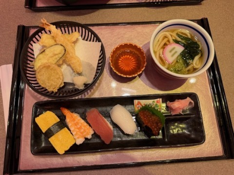 今日は日曜日で、いつものようにアンデルセンでモーニングを食べて一旦家に帰り、庭の花々に水をやりイオンモール綾川へ行った。お昼は写真の「にぎりご膳」を頂いた。1,200円ほどで美味しかった。夕食の食材(トンカツ)を買って帰った。書写書道の9月号が届いて賞状も届いたので確認したら7月号の課題を書いた小学5年生の硬筆が「特別優秀作品」…(全国学年で一番上手だった)に選ばれていた。指導していて最も嬉しいことだ。うちの教室は何時間も親が横についてビシビシ指導するようなことはしない。この硬筆作品も実質書いたのは練習無しのいきなり本番、30分程度で書き上げている。実質これが実力だと思う。