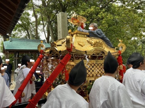 昨日の白羽神社秋の例大祭の「御下がり」前の神輿