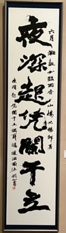 今日は金曜日で、10時に今日から開催の第2期県展の観賞に行った。途中落雷が鳴り雨が急に強く降りだした。県立ミュージアムの駐車場は建物の地下なので雨が降っても心配ないのは有難い。岩澤さんご夫婦と一緒に会場を観て回った。今回の私の作品は趙之謙をベースに両サイドに小書きを添えたが、もう少し迫力を出せば良かったと反省しきり… だいぶ入選作品の様変わりを感じた。前衛作家が漢字を書いたり、漢字作家やかな作家が調和体で出品したりしてなんでもありなことになってきたのは私は如何なものかと思う。県下最難関という立ち位置にある「香川県美術展覧会」だから当然専門分野での作品を見たいと思うのは私だけだろうか?