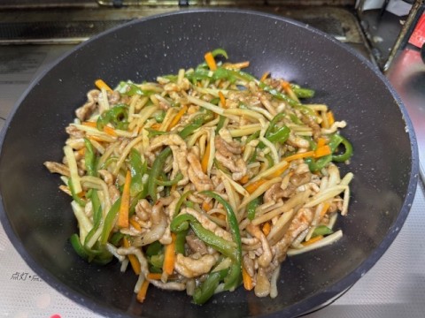 今宵はチンジャオロースを作りました