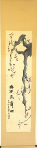 写真は36年前に第1回習作展に出品した梅の墨彩画(私の戯画)の梅図と趙之謙風に書いた画讃。自分で絵を書かないと書で失敗した際に、もう一度絵を他の人に画して貰うのは失礼なので仕方なく墨絵の本を勉強して画いたものだ。