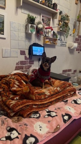 夕方滋賀から長女家族が帰ってきた。ペットのチワワ(ラテちゃん)同伴で… うちのアヴィーちゃんは、まだ馴染めないようだ。