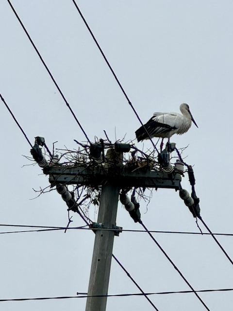 今日は土曜日で、8時から児童の教室をして10時に浅野コミセン教室へ行ってたら電柱の上に二羽の白い鳥がいるではないか。鷺かなんかかもと思ったが、あんな電柱の上にしかも巣作りすることはないと… もしかしたら(ありえないけど)コウノトリ? かと思い、車を端に停めてネットで検索。出た写真とまっつい←(おんなじの意)