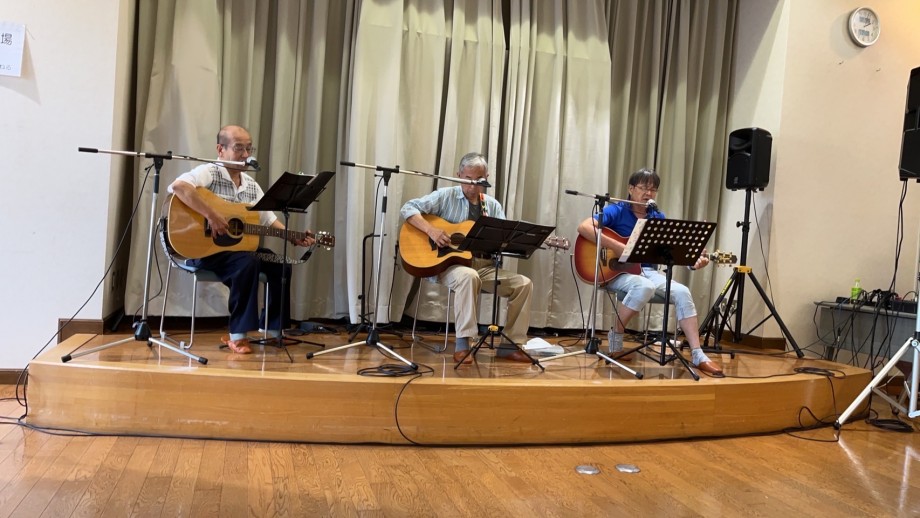 朝二女の部屋の片付けの手伝いから始まった。お昼はソーメンを食べて大町コミセン行事の「第二回ビギナーズライブ」に参加するために出掛けた。前回はグループでの練習が十分でなかったことから私一人での参加となったが、今回は一人は仕事の都合で参加できなかったが、それでも三人での参加となった。三人で演奏するのはウインズとしては初めてのことだ。曲目は私が一番に森山直太朗さんの「花鳥風月」を歌い、次にリーダーがかぐや姫の「僕の胸でおやすみ」を。最後にM君がはしだのりひことシューベルツの「白い翼の鳥にのって」の三曲約10分を無事演奏歌いました。コロナ感染症予防をしっかり取りながらの開催で次回は9月の末頃の予定だそうだ。今度は4人揃うだろうか? 終わって記念の演者さんの集合写真を写して我々はアンデルセンへ行って反省会。お茶をしただけなのだが…