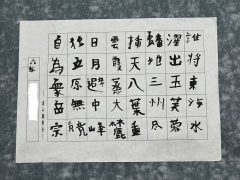 写真は先日の栗山祭で小学6年生が書いた中の一枚で、この作品…いいね~ ^-^ パット見れば下手に見えるだろうけれど、芸術を意識して大人が異常なデフォルメをした手本を渡してこの通り書け…とかだと絶対このようには書けない。子供が一生懸命自分は上手ではないという意識の中で、この子なりに一生懸命書けたのがいい。知らない子だが、褒めてやりたい。ひらがながないので調和体ではないが、素晴らしい作品だ。