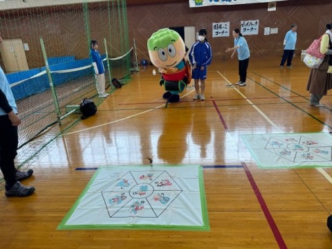 今日は日曜日で、元気になろうDAY! in むれの開催日で、自治会の荒神様のお祀りと重なってしまったので、お断りをしてこちらの方の準備にあたった。担当は写真の「羽根っこ」という内容のもので、お正月の羽根つきのような羽根に土台がお餅のような平たいお守りの役割をするものが合体して投げれば落下した際にわずかにバウンドをして滑って立って止まるというもので、的の中には七福神の絵が描かれてありそれぞれ得点が記されていて、5投の合計点数を競う競技で的までは2~3mとなっている。幼児から高齢者まで誰でもできるニュースポーツの一つだ。スタッフは6人で関わった。15時に終了となった。