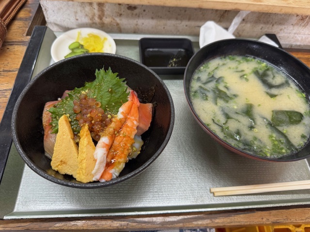 今日は日曜日で、8時にいつものアンデルセンでモーニングを。それから庭の手入れをして、浜街道を西走った。お昼に写真の市場に寄って海鮮丼を食べた。それから丸亀まで走って、TRIALへ行った。今日も猛暑で駐車場で車から降りたとたん「暑う~」こんな日が続くようだ。夕食(パスタ)の食材を買った。帰りにマクドで「桃のスムージー」をドライブスルーした。夕食の後7時からバレーだ。