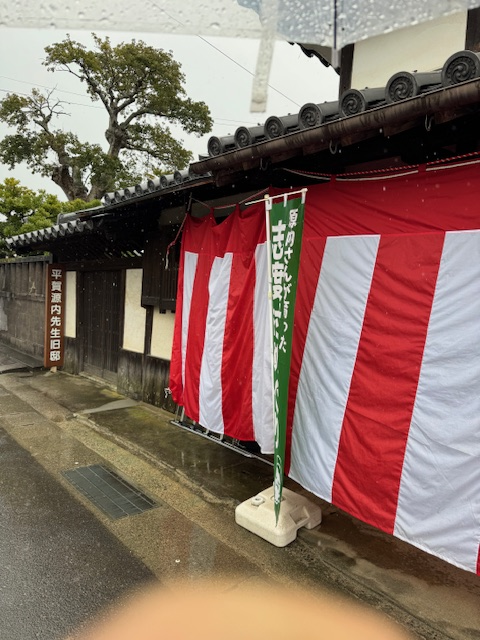 今日は水曜日で、ペットボトルを捨てて、朝食を。10時に古高松コミセン教室へ行った。4月号の本を忘れてまたまた奥方に届けてもらった。申し訳ない。(-_-) お昼は家でうどんを食べて1時半に志度の源内旧邸で98回目の「源内祭」に、栗山顕彰会代表理事として、来賓案内があったので出掛けた。雨だったんで今回は邸宅内での奉賛行事となった。1時間ほどで終わった。久しぶりの大雨を経験した。4時から児童の毛筆の練習をした。夕食(おでん)の食材と調理は奥がやってくれた。感謝、感謝。 ^-^