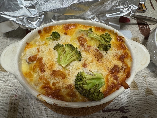 今日は月曜日で、可燃ごみを捨てることから始まった。10時にガリバーへオイル漏れが見られるので、パッキン交換のために車を持って行った。水曜日には作業が終わるとのことで、代車を出してくれた。それからイオンモール高松店に行ってお昼を食べた。夕食(写真のマカロニグラタン)の食材を買って帰った。