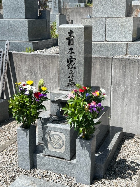 今日は日曜日で、7月30日は師匠:青木研碩先生の命日ということで、暑い中、墓参に行った。師匠がお亡くなりになって一度も欠かさずにお参りが出来ている。私の二人の娘の命名も師匠にお願いをして名付けの親である。墓文字は研碩先生自ら書かれたもので、研碩先生の師:辻本史邑の金冬心風で格調が高い。石質は庵治石細目の私の父が作ったものだ。お参りが終わって家に帰ってすぐにシャワーを浴びた。汗だくになった。