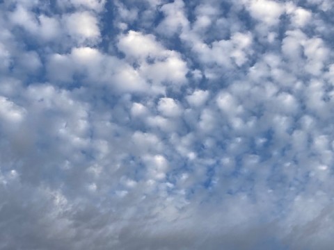 鱗状の雲が浮かぶ朝
