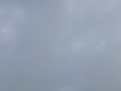 今朝は雨は止んで、灰色の雲が広がっています。
