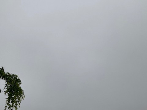今朝も雲に覆われ、ぽつぽつと雨が降っています。