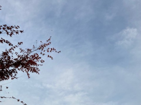 今朝は青空に薄い雲がかかり、薄雲を通して朝日が射してきています。