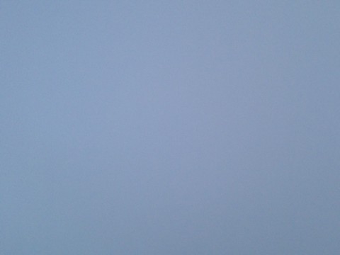 今朝は雲に覆われた空で、周囲に立ち込めた靄と混ざり合って見えます。