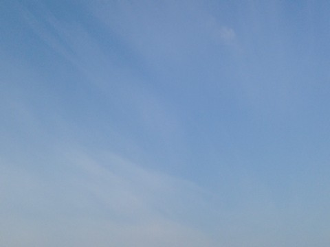今朝は、青空に薄い雲が出ています。陽が射して明るい空です。