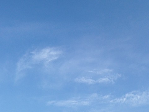 今朝は晴れて薄い雲の浮かぶ青空が広がっています。