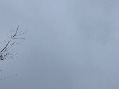 今朝は灰色の雲に覆われ、小雨が降っています。