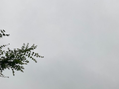 今朝は雲に覆われて薄暗い朝です。少し靄が立ち込めています。