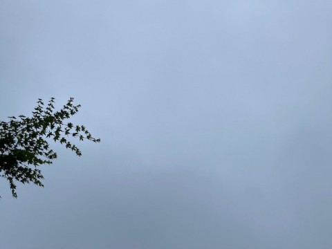 今朝は灰色の雲に覆われ、小雨が降っています。