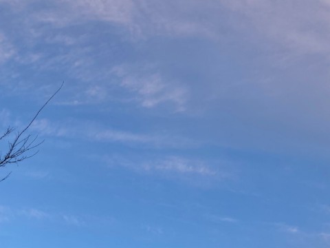 今朝は薄い帯状の雲が幾つも浮かんでいます。