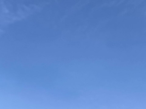 今朝も晴れて、うっすらと雲のかかる青空が広がっています。