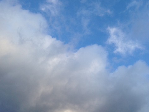 今朝はまとまった雲が所々に浮かんで、雲の間から陽が射してきています。