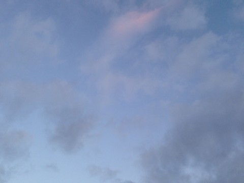 今朝は青空にまばらな薄い雲が幾つも浮かんで、雲の間から陽が射してきています。