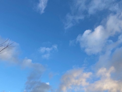 小さな雲が転々と浮かぶ朝