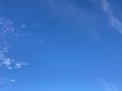 今朝は晴れて、雲の少ない青空が広がっています。