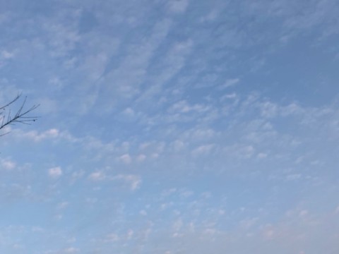 今朝は青空に鱗状の雲が浮かんで、その間から陽が射してきています。