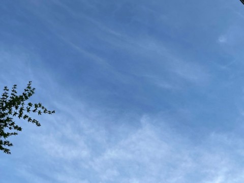 今朝は青空に薄い雲がかかっています。朝日が射して明るい朝です。
