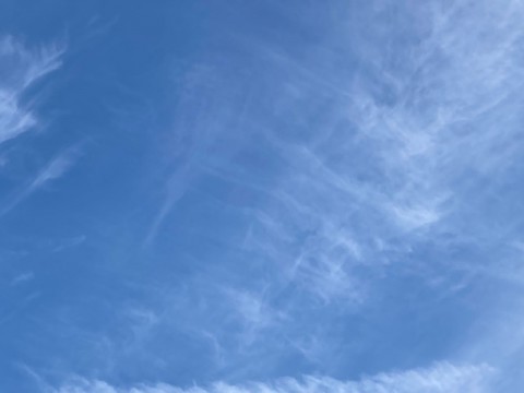 今朝は晴れて、薄い雲のかかる青空が広がっています。