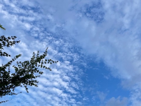 今朝は小さな雲のかたまりが部分的に浮かんでいます。