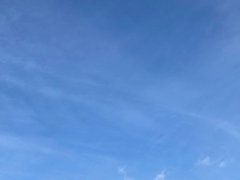 今朝は薄い雲のかかる青空が広がり、暖かく明るい朝です。