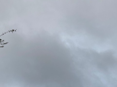 雨雲が広がり、ぽつぽつと雨が降る朝