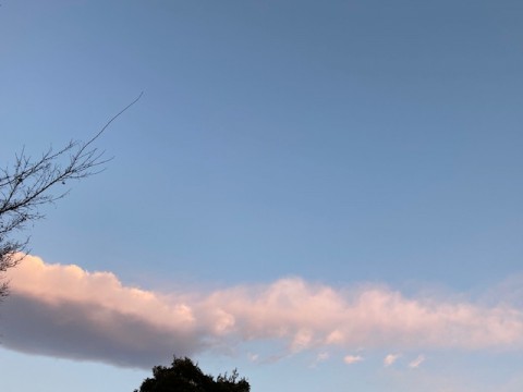 今朝は所々まとまった雲が浮かぶ空で、広く青空が見えて朝日が射してきています。冷え込んで寒い朝です。
