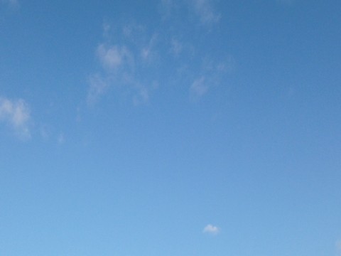 今朝も晴れて、青空に小さな雲が所々浮かんでいます。