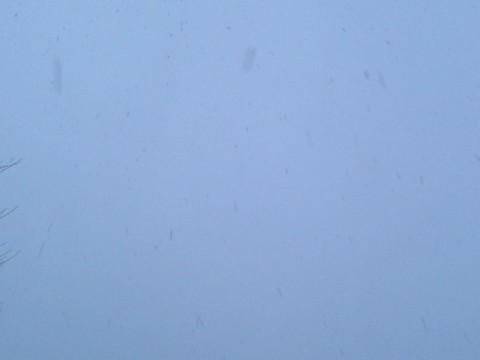 今朝は雪が降っています。薄っすらと積もって景色が白くなっています。