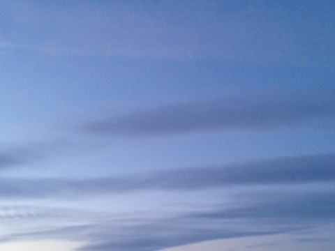 今朝は細長い雲が連なって、しま模様のような空です。