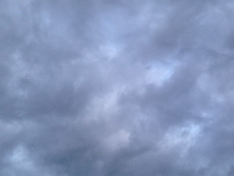 今朝はもくもくとした雲が広い範囲に浮かんで、その間から所々青空が薄く見えています。