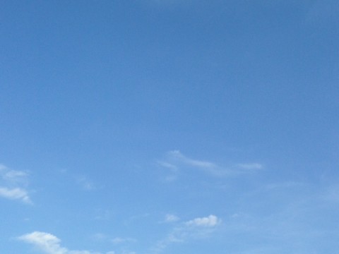 今朝は晴れて、青空に薄い雲が所々浮かんでいます。