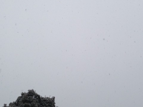 今朝は雪が降り続いて、薄っすらと積もっています。