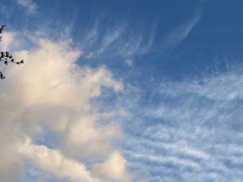 今朝は小さな雲や薄い雲が多く浮かんでいるものの、朝日が射して明るい朝です。